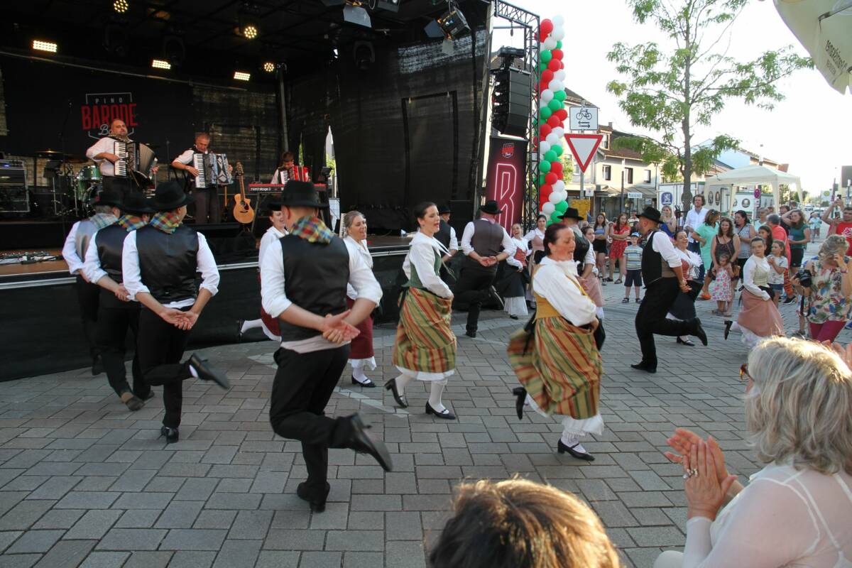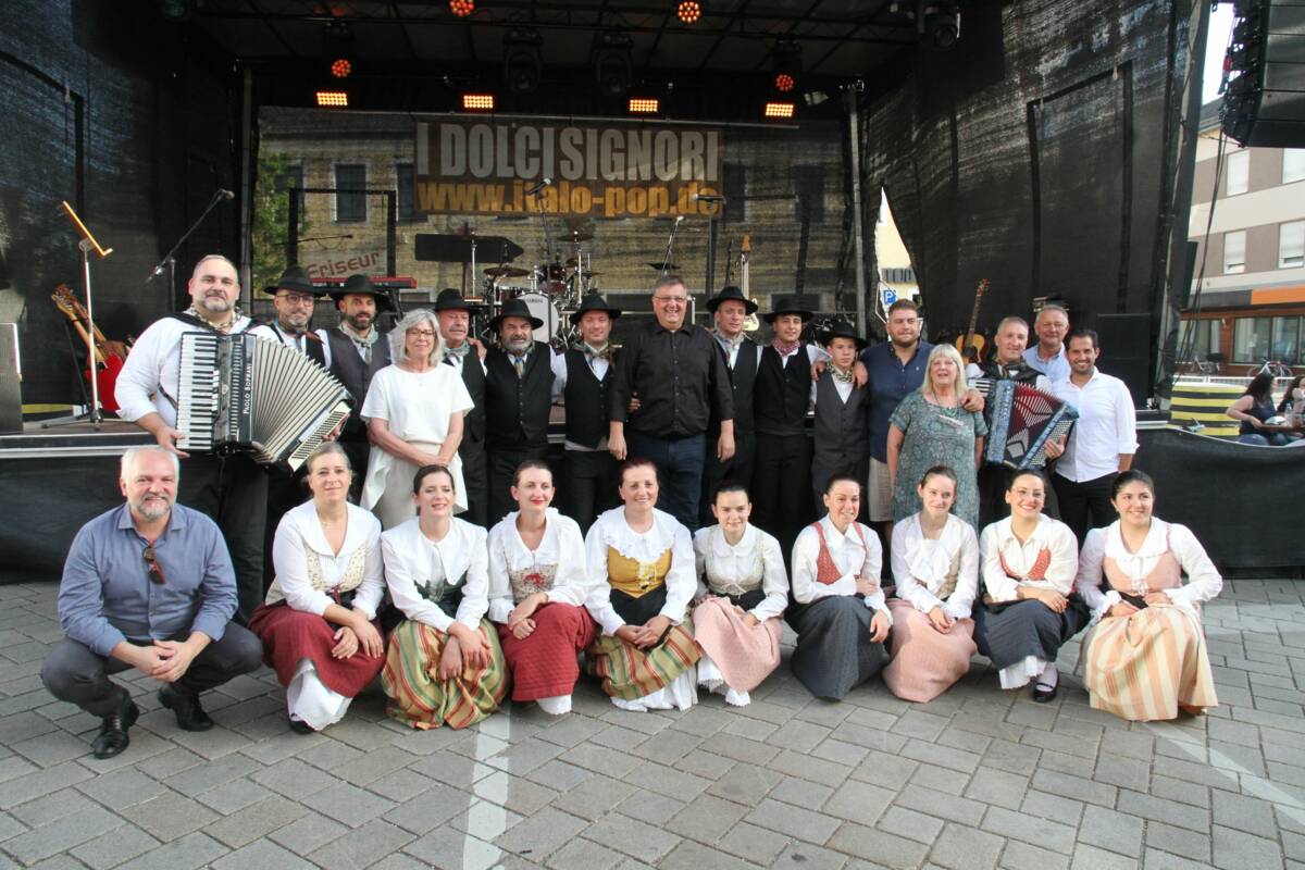 Wie es sich für ein solches Ereignis gehört, war auch eine Delegation aus der Partnerstadt Castelnuovo, mit Bürgermeister Andrea Tagliasacchi nach Manching gekommen, um die zwei Abende mit den Manchingerinnen und Manchingern zu feiern. Da zu einer Städtepartnerschaft auch der Austausch von Kultur und Brauchtum gehört, war die Folkloregruppe "La Muffrina" aus dem Garfagnanatal am 7. und 8. Juli 2023 mit dabei und trat vor der Bühne auf der Niederfelder Straße auf.