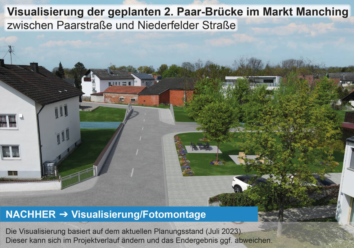 Am Mittwoch (25.10.2023) sind im Rahmen der diesjährigen Bürgerversammlung für den Hauptort Manching Fragen zum Thema zweite Paarbrücke bzw. Erneuerung des bestehenden Paarsteges aufgekommen. Zudem stehen Behauptungen im Raum, die mit dieser Mitteilung richtiggestellt werden sollen.