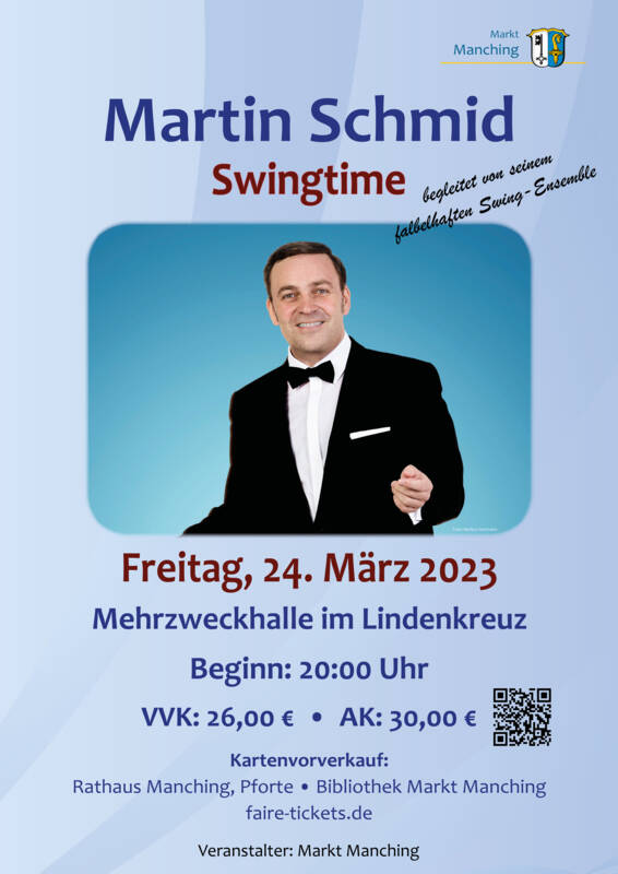 Auch Jazzfreunde kommen bei den mitreißenden Soli seiner fabelhaften Band auf ihre Kosten, wenn Daniel Mark Eberhard in die Tasten langt, Walter Bittner in den Trommeln rührt, Uli Fiedler den Bass zupft und Stephan Holstein sich mit Saxophon und Klarinette in die Herzen der Gäste spielt. Denn Martin Schmid hat von den Besten gelernt: Als Kontrabassist Hugo Strassers „Hot Five“ arbeitete er noch mit Swinglegenden wie Max Greger oder Hazy Osterwald und wird nun auf seine Weise deren Erbe weitertragen.