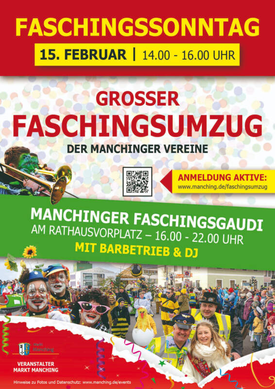 Im Anschluss wird am Rathaus-Vorplatz die 5. Manchinger Faschingsgaudi gefeiert.